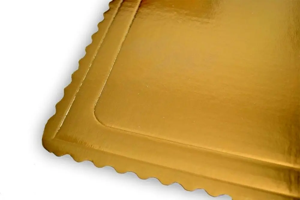 Podnos tortový je vyrobený z hladkej 3-vrstvovej lepenky, pričom svoj elegantný a slávnostný vzhľad má vďaka zalaminovanej zlatej fólii na povrchu.